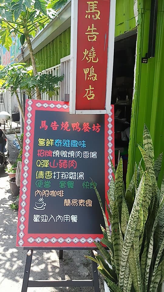 商品型號: 原價: 元 特價:元 產品描述: 馬告燒鴨是先將山胡椒(馬告)塞進醃製好的鴨肚子裡,再放進大爐缸裡以木材燒烤。馬告燒鴨外皮酥脆帶油香,鴨肉帶有淡淡的馬告香味,滋味獨特。而且烤鴨原汁混合馬告汁做成的鮮美沾醬,讓烤鴨滋味更具原住民風味。(一隻450,一盤160) 尚未開放購買